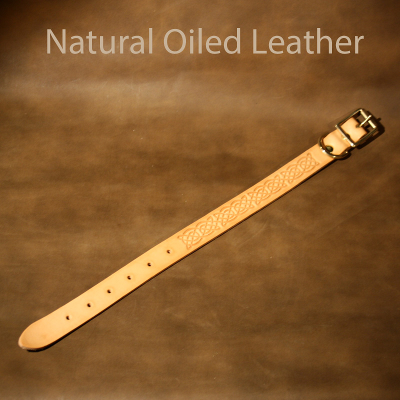 Leather Dog Collar - 15 to 20 inch neck - Dog Collar - Celtic design with natural oiled leather finish.