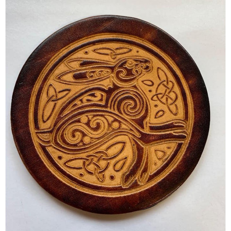 A good solid handmade leather coaster (every one is slightly different). Hand dyed in dark brown leather.