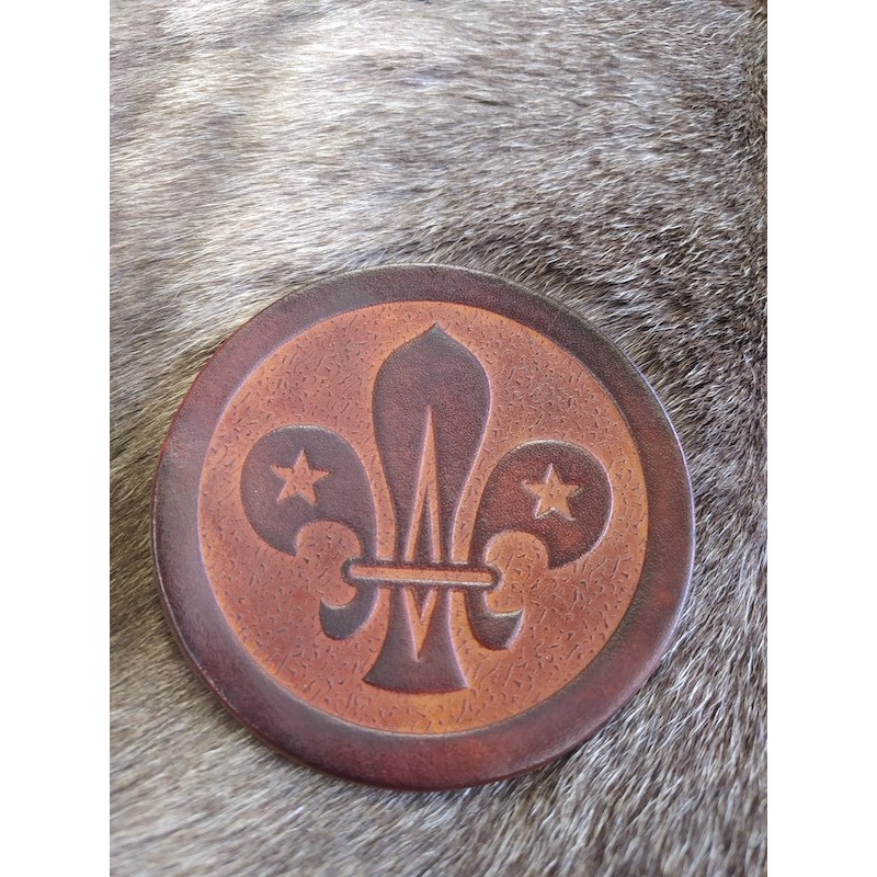 Leather Coaster Fleur de Lys (Brown)