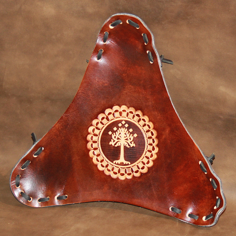 If the White Tree of Gondor design isn't to your taste then a tooling design can be chosen from my sample designs section. Just make a note in the text box as you place your order and tell me which one you would like. I am happy to add a border of appropriate hand tooling to the central motif.