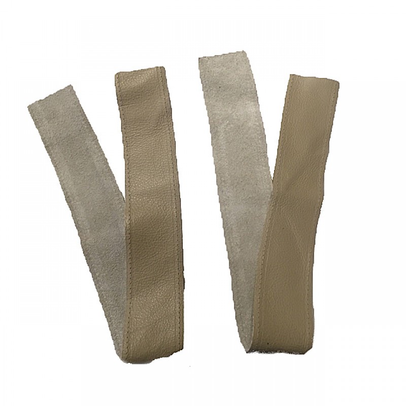 A pair of 22" x 2" (56cms x 5cms) fawn soft leather cuff bindings . Complete with pre-punched stitch holes to make sewing easy.